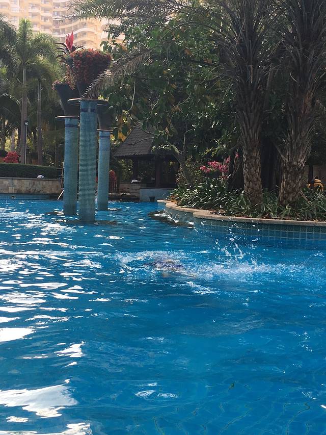 没有事前预订房间,出租车25分钟就抵达逸龙湾酒店海边方向,属于酒店式公寓,就在住宅小区里面,里面基本分为两块:一块是小区居民,一块是酒店,设施共享。在门口大管家处办理好入住,拿到钥匙就可以自行安排了。