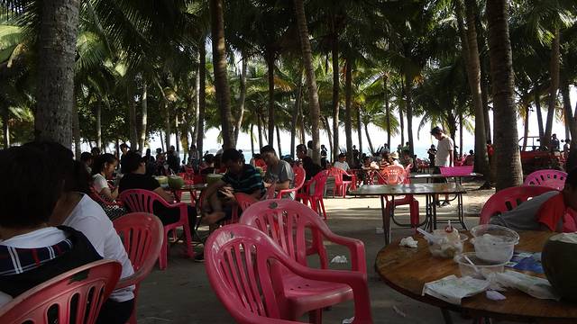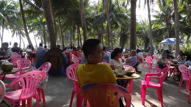 逸龙湾小区在文昌高隆湾这片是比较高档的住宅小区,小区里面还有酒店式管理的住宅,我们选择住9号楼1608房间,888元一宿。与小区居民交谈,事先寻找出租房屋,一个月1000多元也可以找到。小区向海边走就是高隆湾海滨浴场,过年期间人也是不少,椰子树下美食多多。