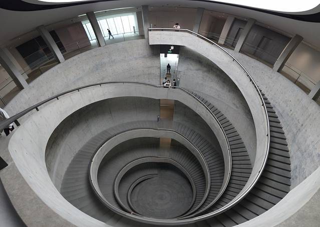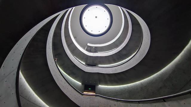 佛山顺德有了一个和美术馆,这是一栋比较前卫的圆形建筑,由日本建筑设计师安藤忠雄设计, 中间有双螺旋的楼梯,从1楼通往4楼,非常动感的线条,摄影师们趋之若鹜,艺术无国界, 这里的旋转楼梯成了网红的打卡地,展览馆里更是陈列了比较多美术作品,参观和美术馆,是一个非常愉悦的过程。晴朗的好天气可以拍到美好的光影,下雨天则可以避开汹涌的人流。