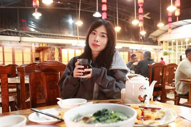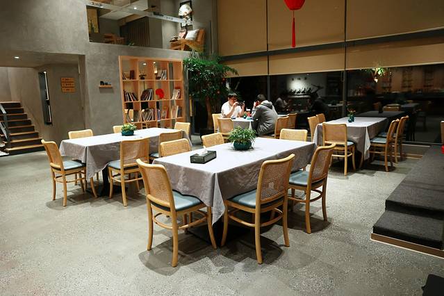 这里是大厅,实木的餐桌椅 挺有氛围,等到饭点临近,这里的一桌一桌就坐满了,看我早早过来,是挺明智的,找个角落一边刷手机,一边等闺蜜下班赶来,路程不远,但是下班高峰堵车也多费了一点时间。