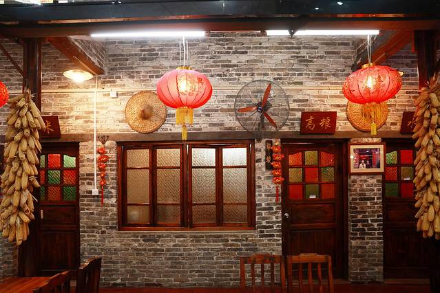 去餐厅吃饭,一个漂亮的有特色的环境,更能让人心情愉悦,这里就感觉不错哟,青砖砌墙,红灯笼装饰,这里那里挂几串玉米,加上暖暖的灯光,氛围感马上就来了。