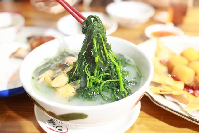 在广东居住多年,也养成了一个习惯,每顿饭一定要有一个绿叶子的蔬菜,这次就点了上汤桑叶,非常鲜嫩,汤汁鲜美。