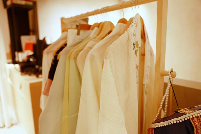 办好入住,放好行李,来到民宿夹层的茶馆,这里有十几套汉服可以选择,汉服有的是两件套,有的三件套,自己不太会穿,店里的小姐姐会帮助。茶馆里有一些配饰可以选择,我就简单的插了一根花簪子。
