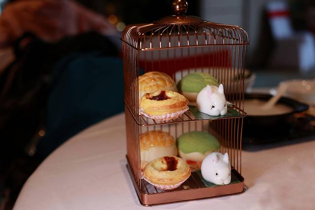 团圆点心拼盘,鸟笼里的蛋挞和小兔子,蛋挞要趁热吃。小兔子是椰浆做的,嘟嘟的Q弹可人。
