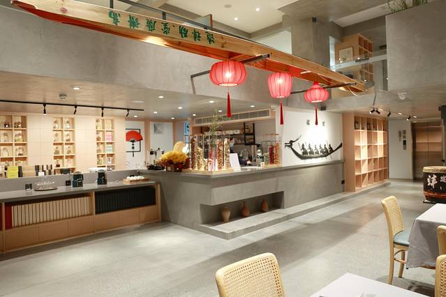 这是龙归里一层的陈设,顶上挂着一个长长的龙舟,吧台后边是厨房,在这里可以点咖啡,早餐也是在这里,相当有氛围了,看小姐姐在那里做咖啡,真的是赏心悦目。