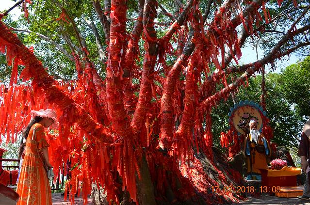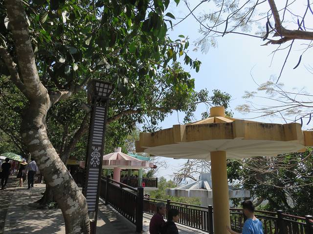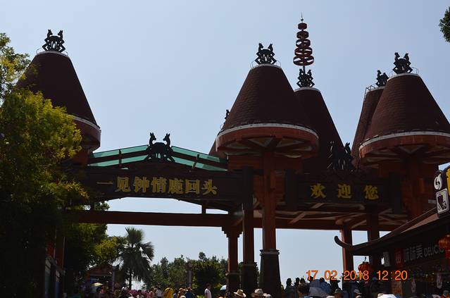 逛公园的最高处就是鹿回头雕塑,它是三亚市的城雕,雕塑全高15米,由广东省著名的“五羊城”雕塑作者,雕塑家林毓豪先生花了4年时间完成。在一头回眸凝望的坡鹿两侧,分立着仙女与青年猎手,仙女窈窕俊俏,含羞带喜,已经完全是黎家姑娘的美丽装扮。猎手结实健壮,憨厚质朴。别看他们背靠着背,其实早已经心连着心了。美好爱情故事的传说,道出了人们对美好生活的向往和寄予。据说,在雕塑前留影,能够得到他们的祝福,分享他们美好爱情的幸福,那就在鹿回头雕塑像前留影吧,20元很漂亮。