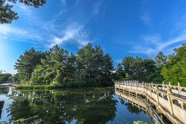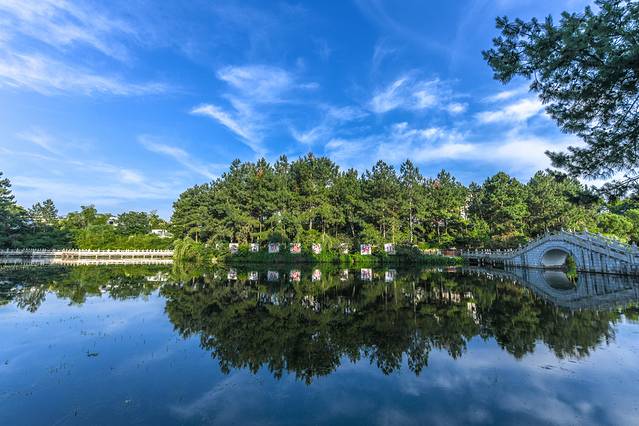 蓝天白云、绿水青山的风光本应该是自然名胜区的代名词,如今在很多小城市的街头公园都能随时看到这般景色。倘若山野君不告诉大家这是一处国家级开发区内的绿地的话,或许你们都误以为它是哪个自然风景区呢,宁国南山公园是国家级宁国经济开发区内的最早的一座城市公园。