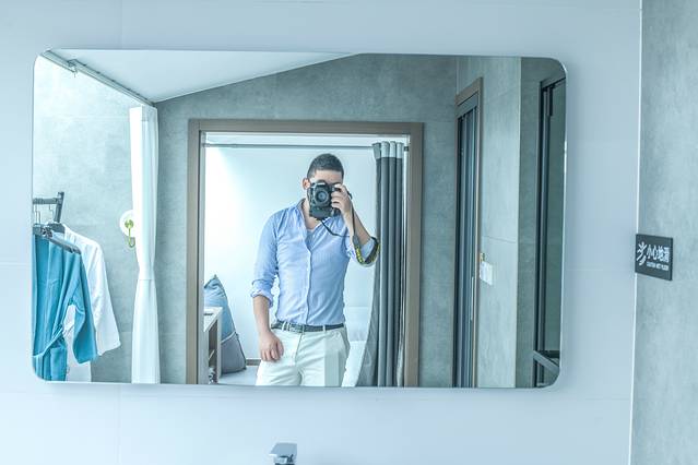 山野君一个人入住在这样的套房太可惜了,应该带个女人一起来玩,哈哈!看到这么好的环境忍不住对着镜子自拍一张,以证明山野君确实入住过该民宿。
