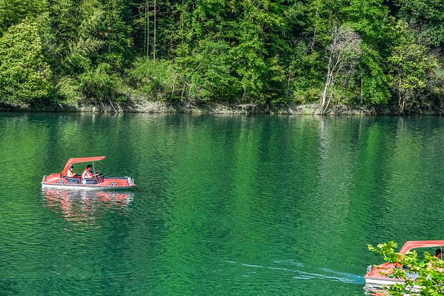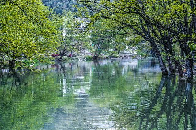 胡乐确实是一个很美很有历史的古镇,两岸风光颇具对比性,东岸是现代集镇面貌,现代化的建筑物在绿林间隐约可见;西岸的古镇风光颇具岁月的沉淀感。变化莫测的天气更为两岸现代与古韵风光添加几许美感。