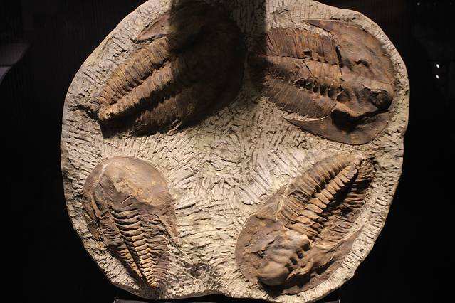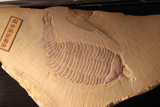 三叶虫是距今5.6亿年前的寒武纪就出现的最有代表性的远古动物,是节肢动物的一种,全身明显分为头、胸、尾三部分,背甲坚硬,背甲为两条背沟纵向分为大致相等的三片——一个轴叶和两个肋叶,因此名为三叶虫。三叶虫在5亿~4.3亿年前发展到高峰,至2.4亿年前的二叠纪完全灭绝,前后在地球上生存了3.2亿多年,可见这是一类生命力极强的生物。在漫长的时间长河中,它们演化出繁多的种类,有的长达70厘米,有的只有2毫米。三叶虫与珊瑚、海百合、腕足动物、头足动物等动物共生。大多适应于浅海底栖爬行或以半游泳生活,还有一些在远洋中游泳或远洋中漂浮生活。它们以原生动物、海绵动物、腔肠动物、腕足动物的动物尸体或以海藻等细小生物为食。中国三叶虫化石是早古生代的重要化石之一,是划分和对比寒武纪地层的重要依据。