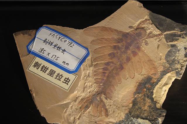 抚仙湖虫是澄江生物群中常见的一种原始节肢动物,它们具有叶足状原始步行器,不擅长行走,可在近海底处滑游。其体长10cm以上,头部具一对带柄的眼睛,躯干分为胸、腹、尾扇和一个尾刺,胸部有16-17节,背甲具很宽的肋叶,腹部具14个背甲和腹甲。