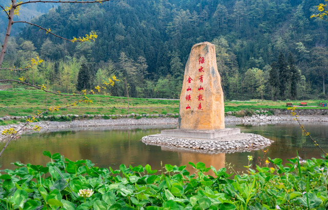 不得不说这里真的超级好出片,手机随便一拍都很好看,到湖边,和“绿水青山就是金山银山”来一张。
