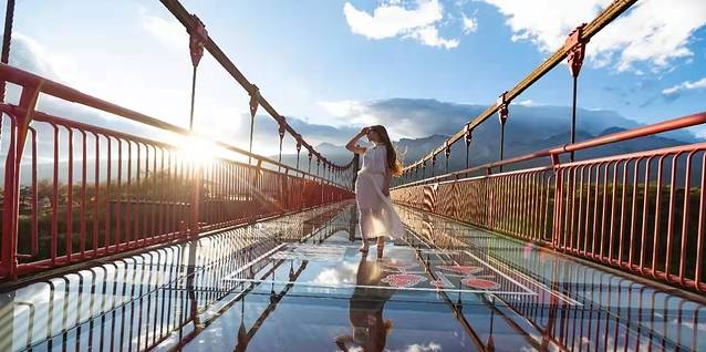 雪山峡谷演艺公园的玻璃栈桥是全国海拔最高的玻璃桥,桥下面是峡谷,桥后方是玉龙雪山,不恐高的话这个地方也非常适合拍照。