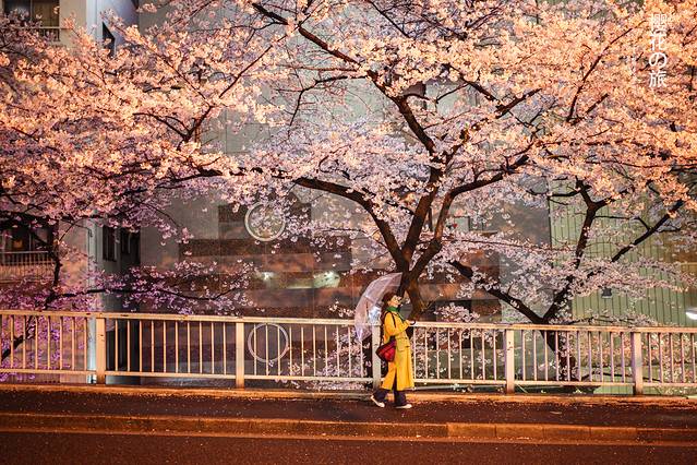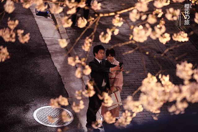 虽然这里不是攻略里提到的赏夜樱的最佳地点