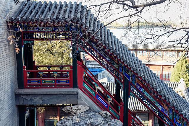 虽是皇家园林,北海却未有太过端重的皇家气质,反倒是“漪澜堂波相光映,濠濮间游廊曲折”,颇有些江南园林的温婉秀丽,而琼华岛上的藏式白塔是整个北海公园的标志。是的,脍炙人口的“让我们荡起双桨,小船儿推开波浪,海面倒映着美丽的白塔,四周环绕着绿树红墙……”,说的就是这里。