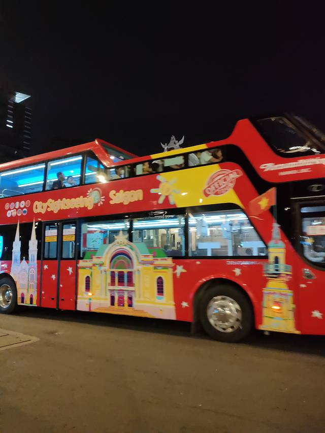 旅程从胡志明广场出发,来到雄伟的统一宫,绕过正在修建的红教堂,在中央邮局做短暂的停留,供游客们拍照,车继续慢慢向前行驶,经过一个不知名但建筑设计很特别的广场,此时夜幕已降临,昏黄的灯光下,许多人在那小聚(年轻人和情侣居多);下一站到达战争博物馆,天太黑加上树木的遮挡,只能看到模糊的轮廓;滨城市场不懂是因为在修建还是因为疫情,暂时没有开放,只有稀稀疏疏的几个行人在那里;河上常年有两艘大轮船的对面是热闹的步行街,非常多海鲜餐馆,据说这里是缩小版的上海滩;车子最后经过热闹依旧的范五老街、欧式风格的歌剧院,回到了起点胡志明广场。全程大概50分钟,观光车把在胡志明市中心的几大旅游景点都走了一遍。