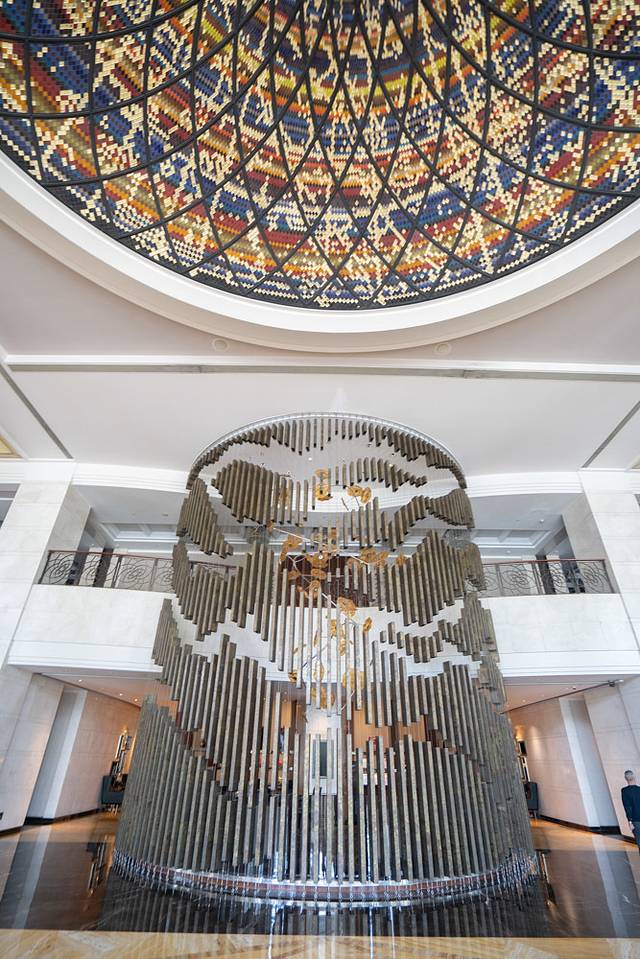 进入酒店,中堂是非常高的吊顶,大气典雅,塑造了非常阔气的感受。