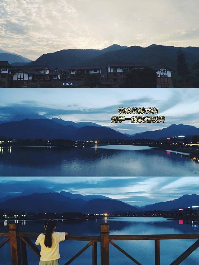 民宿旁边的峨秀湖,傍晚非常静谧,像仙女下凡般美好。