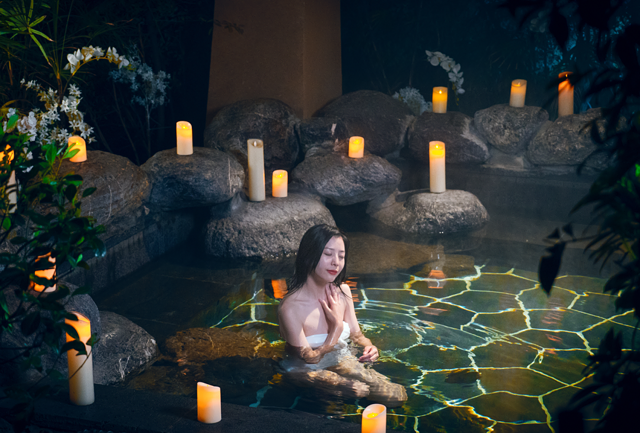 如果觉得室外稍冷,也可以选择室内温泉,室内有牛奶泉、玫瑰泉、薰衣草泉、咖啡泉、鱼疗池多种特色的汤池,功效也是各不相同。