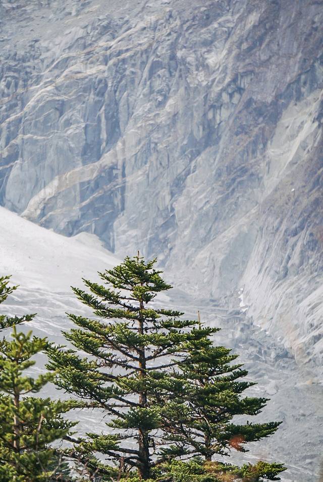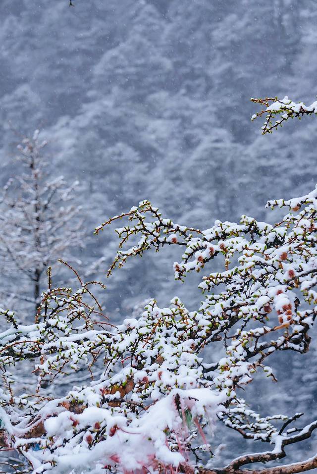 春日的海螺沟,葱葱郁郁的云杉下,是还没融化的冰雪,在高原阳光下,植被披上了新绿,山间的树枝也悄悄长出新芽,一派生机盎然的景象,是充满活力和希望的春天呀......