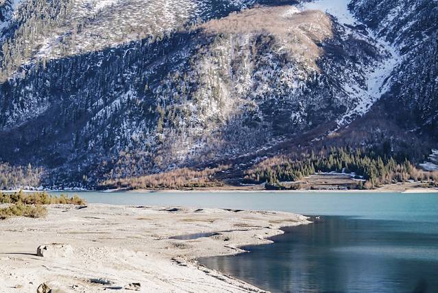 冬季的然乌湖一般会进入冰封期,其他月份都是如碧玉一般的颜色,但是在6月份进入雨季后,湖水有时候会变得浑浊,看到的景色也不一样。