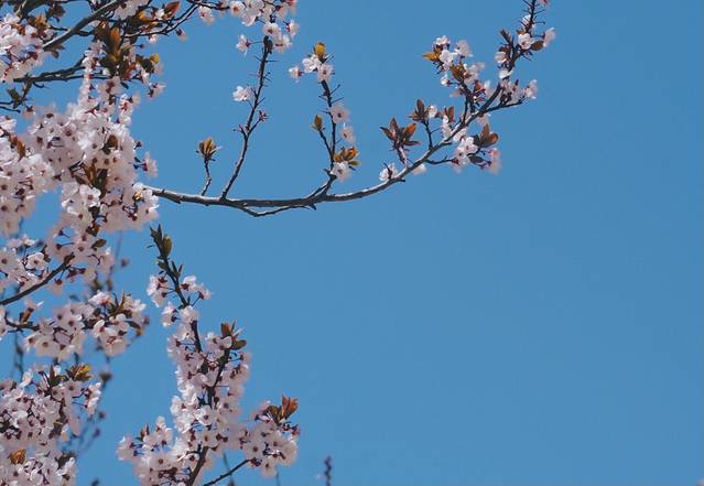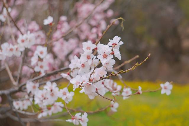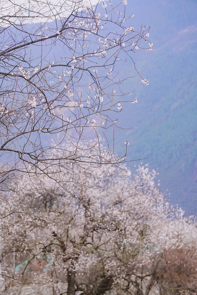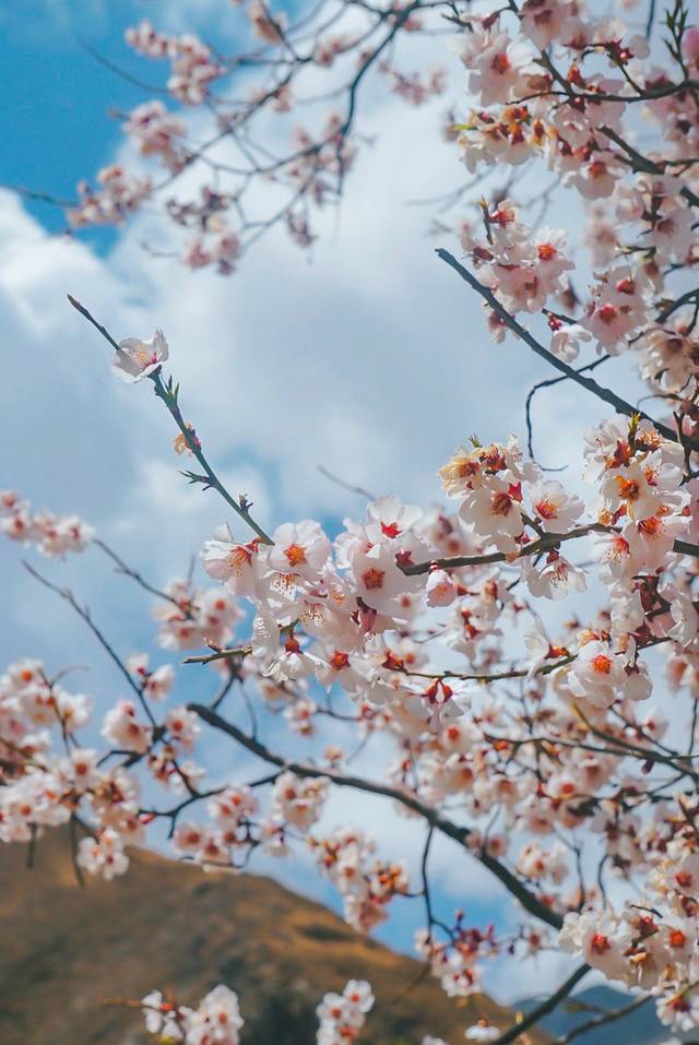 漫步桃花沟里,抬头便见桃花,空气里溢出花香和太阳的味道。喜欢春天里粉色桃花,粉白花瓣在高原阳光下像油画般梦幻,瞬间治愈了所有不安情绪。