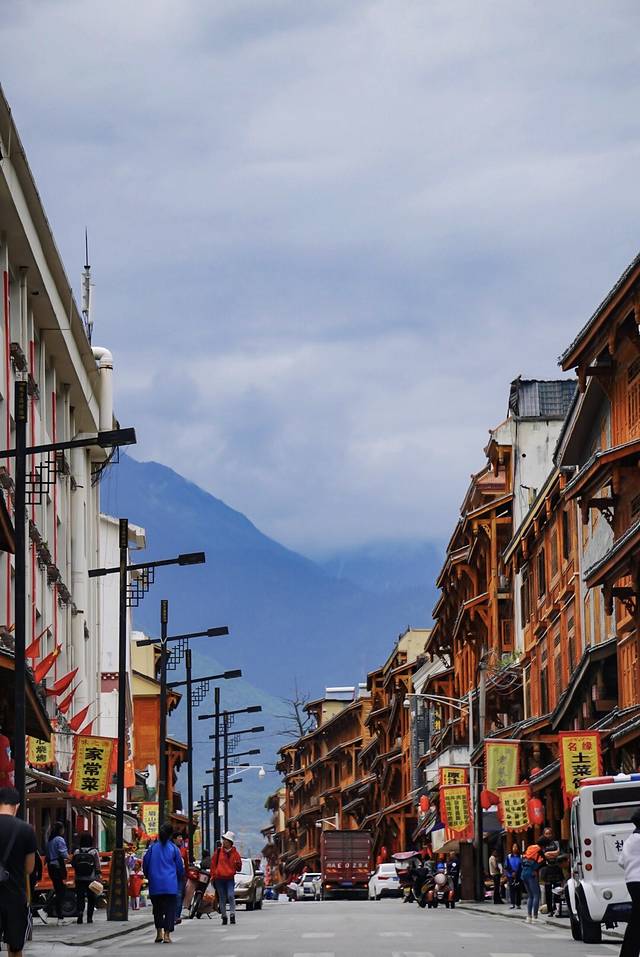 整个古镇被群山环绕,天气晴朗时可以看见雪山,可惜我们去的时候没有遇上大晴天,雪山被云雾挡住了。