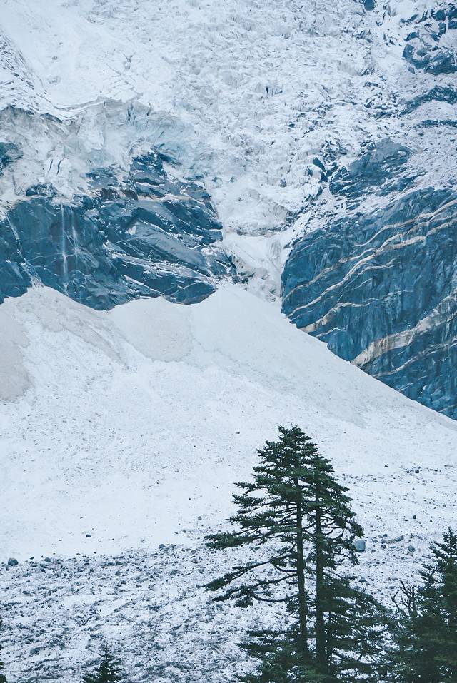 一般世界上的冰川都在海拔比较高的地方,而海螺沟在海拔2850米的低处就能看到冰川,所以 海螺沟 也以低海拔现代冰川著称于世。