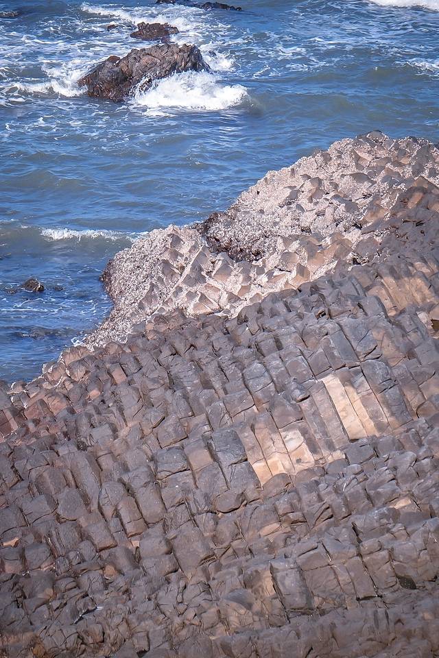 慢慢走近火山岩,这密密麻麻的都让人有些密恐了。记得当年在济州岛玩的时候,远观柱状节理带是一个热门的游玩项目。那么在白塘湾,能拥有的可不止是看一看的视觉体验,还能上去走一走,用手摸一摸这些活化石。毕竟这些火山喷发物距今有2000+万年了。