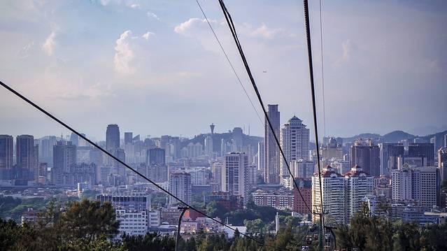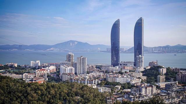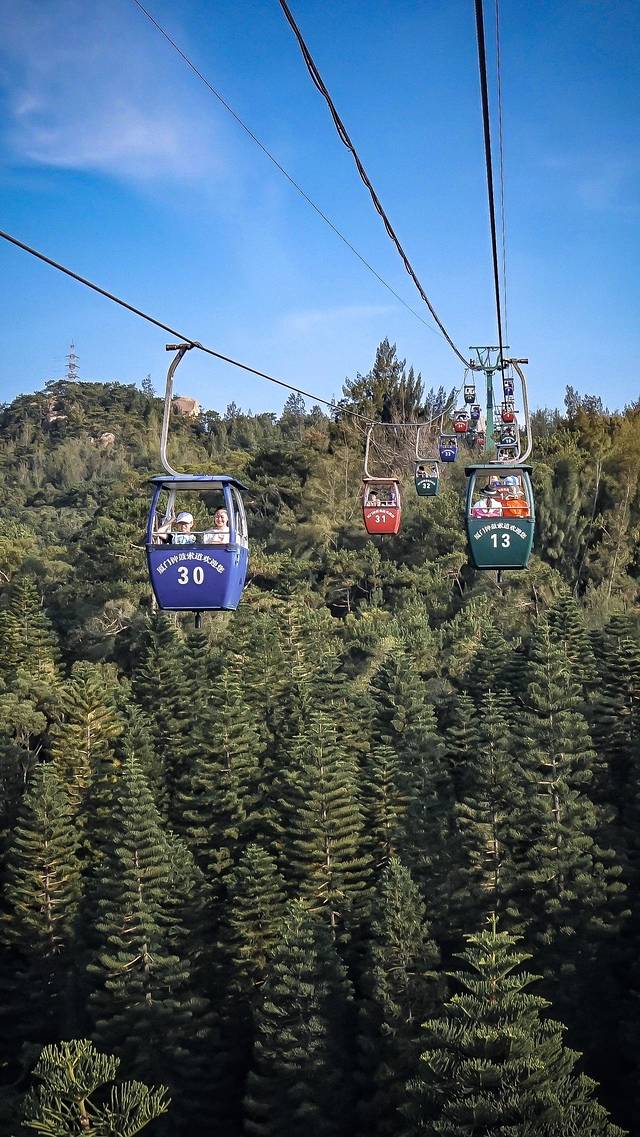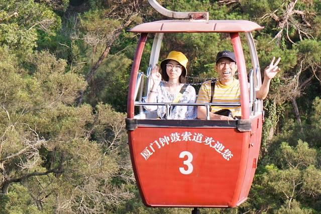 🟢厦门 | 钟鼓索道:从空中俯瞰鹭岛,在海的这一边,一半城市,一半森林。远处矗立着的双子大楼傲视群雄。已知我是拍照的小姑娘,那老爹你旁边的“小黄帽”是哪个姑娘???