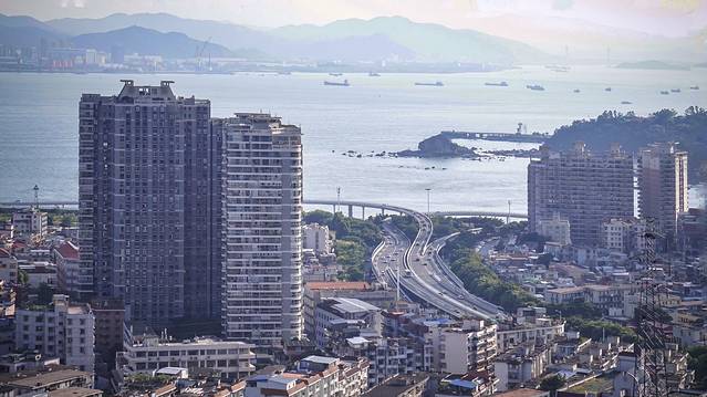 从会展中心出发不多久就能到一国两制沙滩。我猜这个沙滩得名是因为路边竖着巨大的标语牌“一国两制,统一中国”。 天气晴朗的时候,在这个位置可以看见海峡对岸的金门岛。对岸的岛上也竖着巨幅标牌,写着“三民主义,统一中国”。