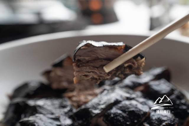 黑松露烧黑棕鹅表皮黑亮黑亮,吃起来外焦里嫩,口感不错。