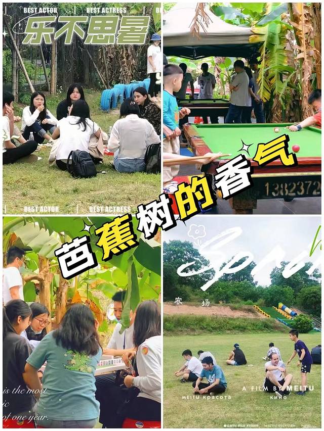 农场的景色很漂亮独特!场地非常大,芭蕉树环抱!中午野炊做饭时在一片的芭蕉树下,大家齐心合作做出一道道美味的佳肴,在芭蕉林里吃饭,享受着美食真是别有一番风味。