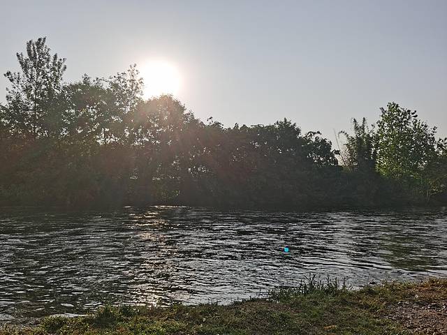 河边耀眼的日出