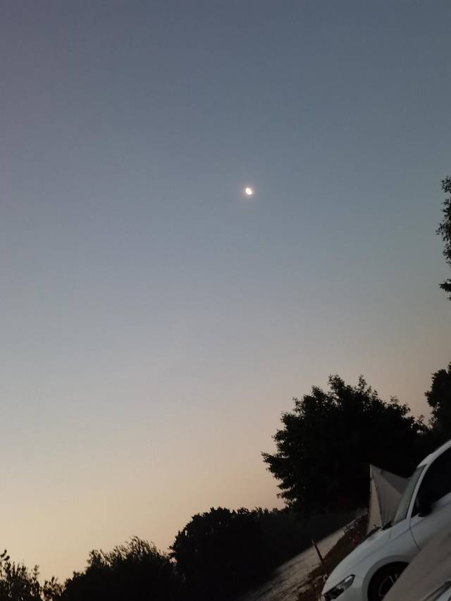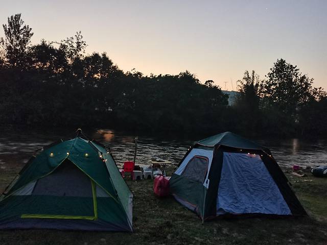 还看了星星,好多,数也数不清,今晚的月亮还没升起来,如今也只有到野外才能看见星星。住进帐篷,伴着鸟鸣、蝉叫、河水声入睡。凌晨靠近水边的露营地,已有露珠在帐篷上,寒意阵阵,只好穿着外衣入睡。