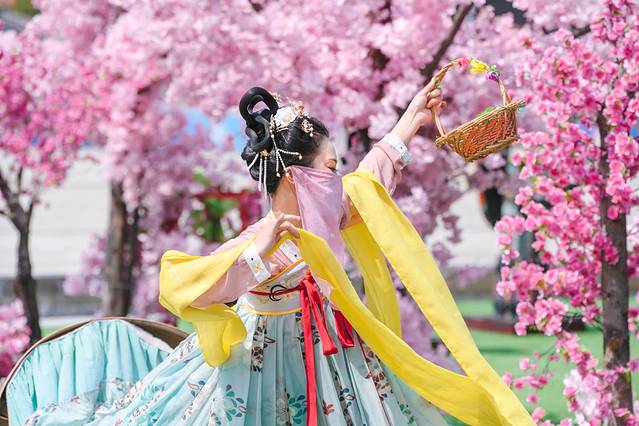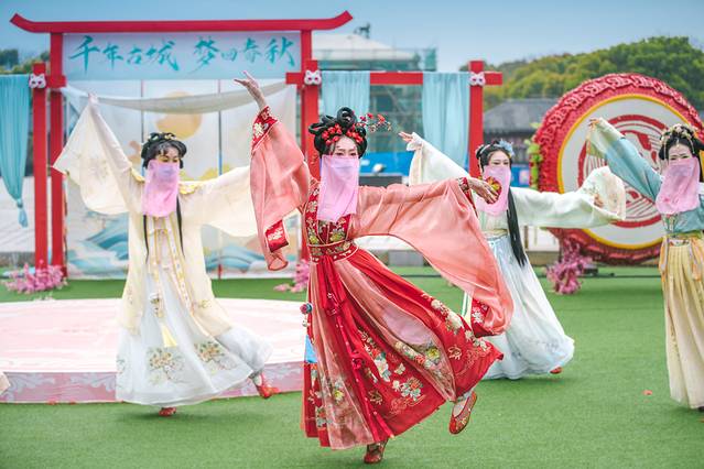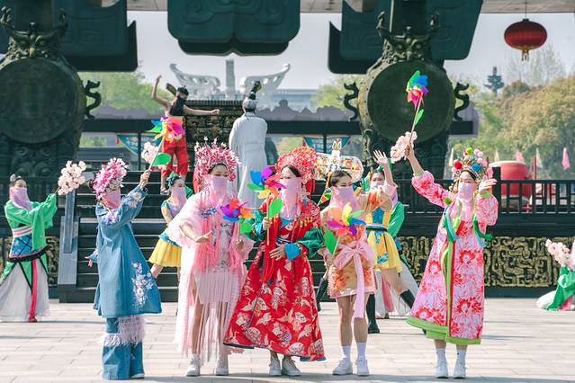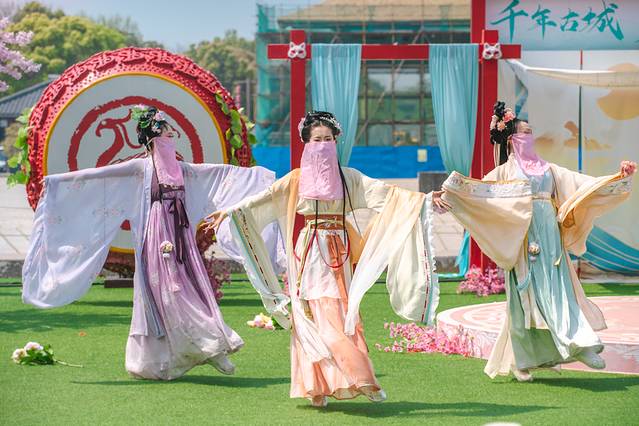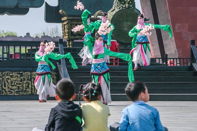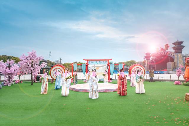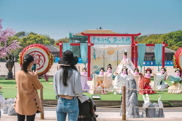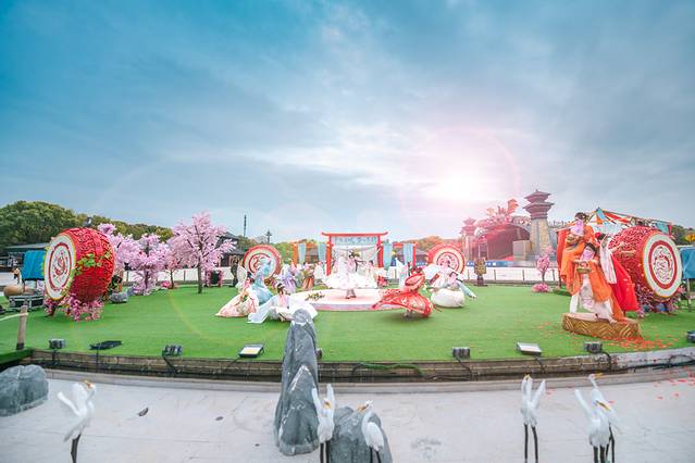 春秋乐园的游乐设施大胆采用现代技术装备,巧妙融合传统的建筑、地理、典故等时代元素展示春秋文化,配合精彩演艺增加游客的参与性、互动性和娱乐性,各类创意在国内旅游界创下多项第一。去年第一场演出,我还记得名字《季子颂》,随后便是必看大型巡游《古风游园会》。春之典礼,听起来很有仪式感,事实上演员阵容也很大,服饰很好看,舞蹈编排,从声乐,到群舞,再到快闪,最后到互动,让第一次来的客人,还是耳目一新。赏春色、观春演,这般如此沉浸式近距离观演,还是大大拉近了国人对国风和历史的距离,赏心悦目,陶醉其间。