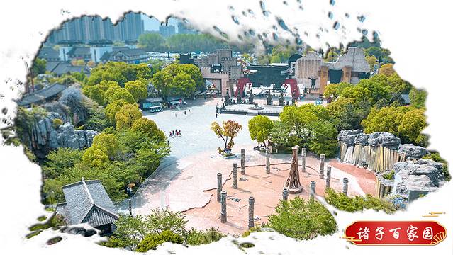 诸子百家园集中展现了儒、道、法、墨等“春秋十二大家”的思想精髓和文化成就,以千古文化为基调,通过多种表现手法诠释了春秋时期最具代表性的学术流派,展现了诸子百家的文化符号。图片依次为春秋版图、儒家广场、医家、阴阳家;此外还有兵家、农家、法家、纵横家、小说家、名家等小景点。自春秋版图经过,右手边是纵横家、阴阳家(第二场演出《春狮送福》表演地),左手边依次是农家、医家等。