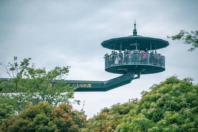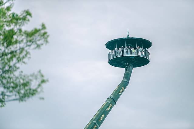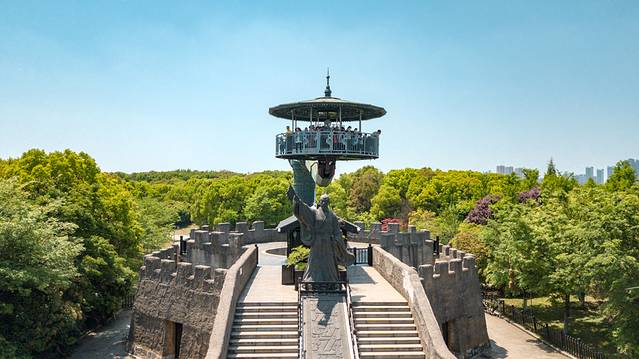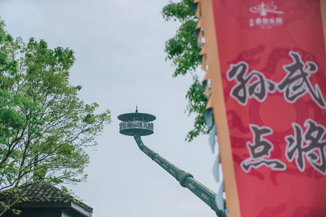 孙武点将台,登上55米高的旋转观景台,国内同类项目的最早原创。缓缓升起至55米,360度水平旋转,全景俯瞰春秋乐园、遗址公园的美,这无疑是最惬意的体验,老少皆宜,而且不限次数哟~每次开班有间隔时间,需稍等片刻,春秋王宫门口的九坊美食街,不妨稍坐一会。