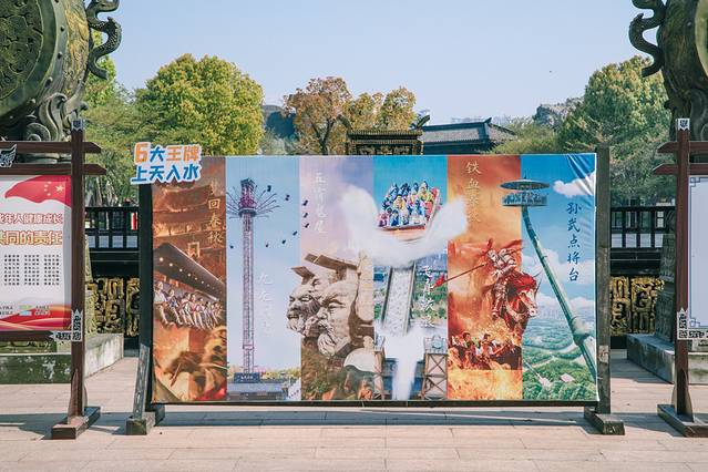 经过九坊桥,就进入成年人最喜欢的区域——铁血冒险城。映入眼帘的就是九龙问鼎,盘旋在40米的高空,环绕飞行,给人以展翅翱翔的快感。这里项目非常之多,一直分布到春秋五霸山附近,所以一定要逐个打卡哟~铁血冒险城是 常州 淹城春秋乐园的大型游乐区,通过将春秋历史典故与现代游乐项目相结合,让游客身临其境地感受 中国 历史文化的波澜壮阔和现代科技游乐的欢乐刺激。去往淹城遗址公园的竹筏游船,就在这里出发。