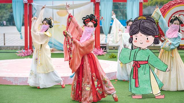 除了上午的节目,在下午闭园前最后一场演出《梅花桩》也在这里上演,此刻也是游客陆续出园之时。不得不说,春秋乐园舞蹈编排很用心,确保了观赏体验,还特别细心,让人恋恋不舍。