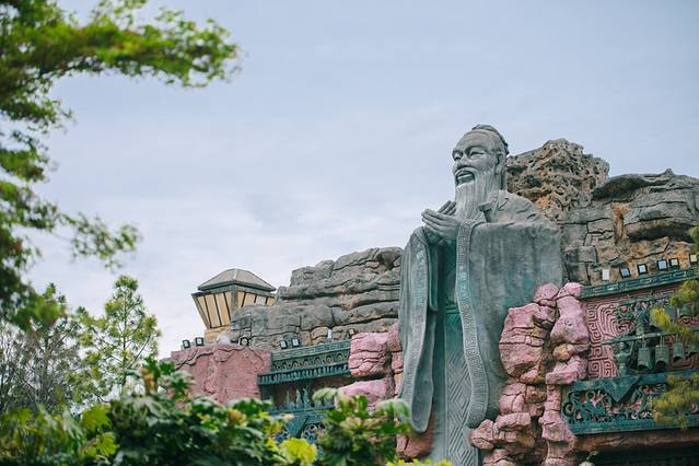 生于春秋战国时期的孔子,开创私人讲学之风,倡导仁义礼智信。有弟子三千,其中贤人七十二。曾带领部分弟子周游列国十四年,晚年修订六经(《诗》《书》《礼》《乐》《易》《春秋》),后人编撰合集成世人皆知的《论语》,流传甚广,所以孔子举世闻名,自然演出也不会错过儒家广场了。这里清幽僻静,周边游休闲吧,还有祈福台,适合简单小憩。