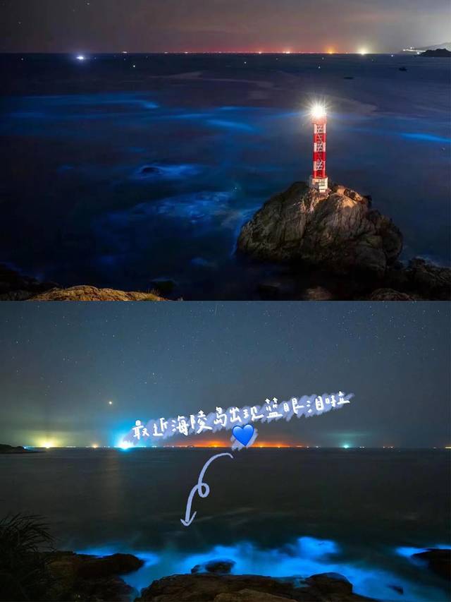 🥳最近去海陵岛还有可能偶遇蓝眼泪💧“希式弯喉海萤”哦,一大片幽蓝的光附在海面上,太漂亮啦!