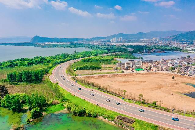 途径东三环——昆磨高速——环湖东路——环湖南路,不仅可以欣赏到昆明市的城市街景,也在环湖公路上一览滇池的波澜壮阔。途径的晋宁东大河湿地公园,也叫作南滇池国家湿地公园,被网上誉为“昆明最美湿地公园”,从环湖南路上拐下来就到了。我们车队也在此地稍作休整,下次有机会一定来这里玩一天。