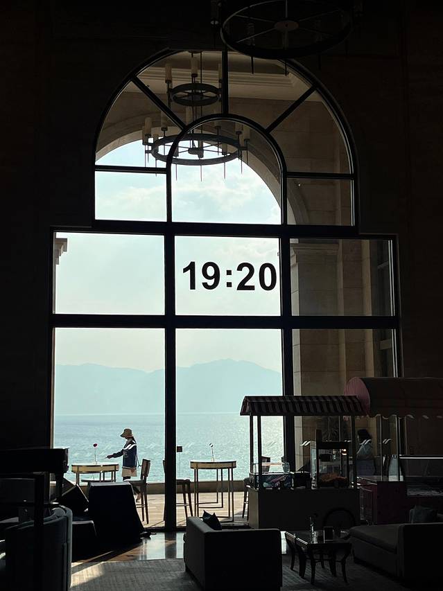 在希尔顿酒店大堂,你会看见湖的方向有块玻璃上贴着大大的19:20。那大概就是抚仙湖落日最美的时间,于是我们安排在18:30出发。半程环湖时常约50分钟;往返距离共计40公里。