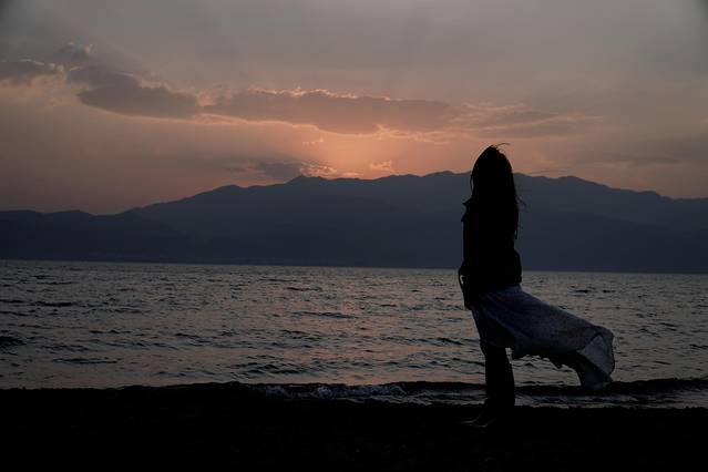 沿途的风景太美了,有好多地方都想驻足下来去看看,路过一处小村落,将车停靠在村落停车场,步行至湖边,远远的看见一个中年男子抬着头望着天上,双手也在不停的搅动。走近一点才看清,他光脚站在湖边的水里在放风筝,而旁边的石头上坐着他的一家人。落日的余晖洒在他们身上,让整个画面都变得无比温馨起来,那一刻我觉得我的心里也变得暖暖的。也许旅行的意义就在于此:换个角度去看别人的生活,然后不经意的被治愈。
