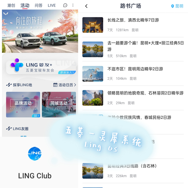 早上9:30从昆明盘龙区呼马山车市跟随车队出发,提前在凯捷的Ling OS灵犀系统上设置好路书,让旅程变得清晰可见。