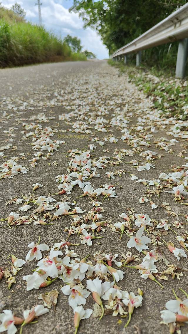古道边还有不少油桐树,有的正在盛开,有的已落了不少。此时开得最盛的是老茶亭附近的油桐花,满树雪白的油桐花让清哥十分兴奋,连续拍了好几段短视频,一边拍一边赞叹,就像一个从来没见过雪的人突然看见周围都是白茫茫的白雪一般。