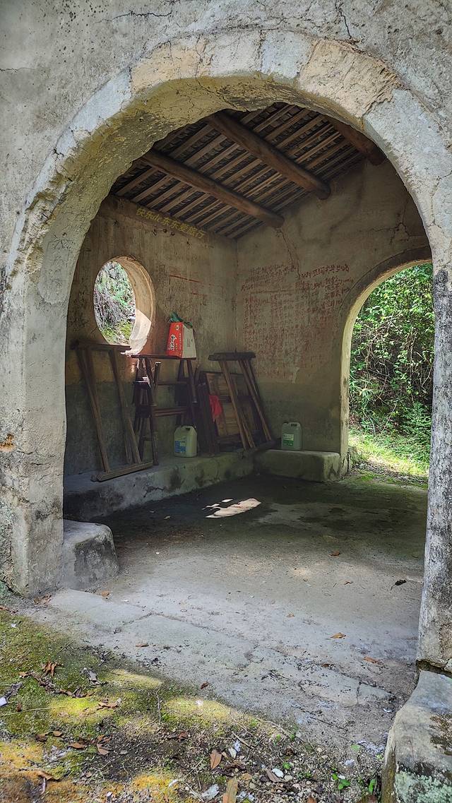 这条古道上最有意境的可能是那座半山腰上的茶亭,书坑人称之为“新茶亭”,其实一点都不新,只是相对于那座只剩下半边屋顶的老茶亭而言,它的历史短了一点而已。