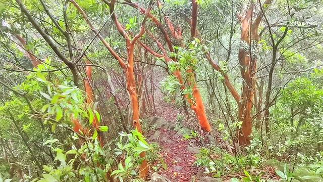 亚髻山虽不高,但坡多路陡,好在登山道均为山脊防火带,且大部分两侧种植了高大的防火林可以遮阴。