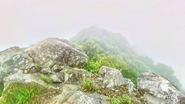 2022.5.1.下中雨,刮大风,山里起雾霾遮住了远处美景影响拍摄有些遗憾,坐公交车到惠阳区精细化工园(公交站)下车,往精工大道雨虹防水,往精工二路走到水泥路点泥巴分叉路,我是往电线杆方向走,往上爬一段路有正常的徒步路线,景祥墓园,斧头寨,虎牙线位于惠州市大亚湾区内,是大亚湾区、惠阳区与惠东县的天然分界线,线路全长大概26公里,累计爬升大概2000米,包含斧头寨…炉司爷……九曲印坳……半山罗……雅居乐……